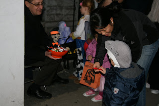 Trick or treating in the neighborhood. Finally, we got us some candy!!!